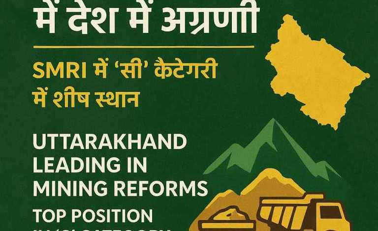 खनन मंत्रालय, भारत सरकार द्वारा गुरुवार को जारी राज्य खनन तत्परता सूचकांक (State Mining Readiness Index – SMRI) में उत्तराखंड ने ‘सी’ कैटेगरी में अग्रणी स्थान प्राप्त किया है। यह उपलब्धि राज्य सरकार के खनन क्षेत्र में पारदर्शिता, दक्षता, सतत विकास और तकनीकी उन्नयन के प्रति किए जा रहे सतत प्रयासों का परिणाम है।