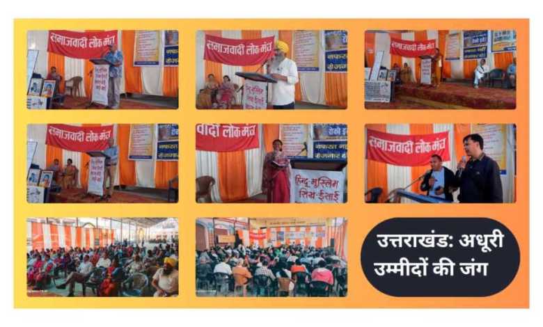रामनगर। उत्तराखंड राज्य स्थापना की 25वीं वर्षगांठ के अवसर पर रामनगर में समाजवादी लोक मंच द्वारा आयोजित जन-सम्मेलन में जनता ने एक स्वर में कहा कि “यह वो उत्तराखंड नहीं है, जिसके लिए 42 वीरों ने अपने प्राणों की आहुति दी, महिलाओं को अपमान झेलना पड़ा और हजारों लोग जेल की सलाखों के पीछे गए।”