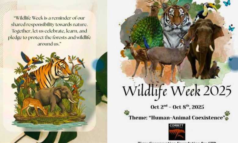 रामनगर।कॉर्बेट टाइगर रिजर्व में 2 अक्टूबर से 8 अक्टूबर तक वाइल्डलाइफ़ वीक का शानदार आयोजन किया जाएगा। वन विभाग के संयुक्त तत्वाधान में आयोजित इस सप्ताहभर चलने वाले कार्यक्रमों का उद्देश्य वन्य जीवों के संरक्षण और उनके महत्व के प्रति आम जनता में जागरूकता फैलाना है।