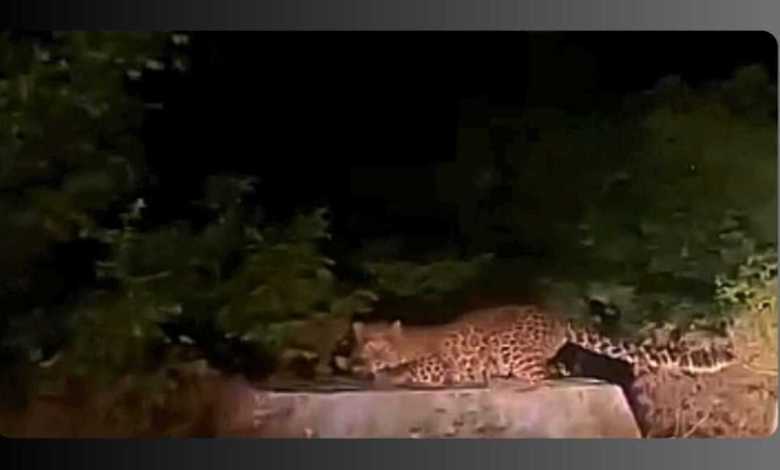 सोमवार शाम लगभग सात बजे का यह वीडियो सोशल मीडिया पर तेजी से वायरल हो रहा है। वीडियो में एक मादा गुलदार (लेपर्ड) अपने दो शावकों के साथ सड़क किनारे दिखाई देती है। इसी बीच सड़क पर एक कार आती है — और जैसे ही उसकी हेडलाइट्स पड़ती हैं, मादा गुलदार खतरा भांपकर अचानक कार के सामने आ जाती है।