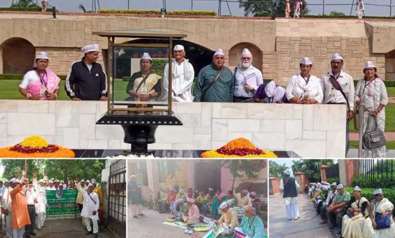 महात्मा गांधी की समाधि पर प्रार्थना, राष्ट्रपति को सौंपा ज्ञापन
