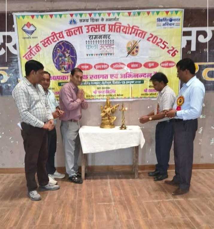 रामनगर।एम. पी. हिन्दू इंटर कॉलेज, रामनगर में आज ब्लॉक स्तरीय कला उत्सव का भव्य आयोजन बड़े हर्षोल्लास और सांस्कृतिक गरिमा के साथ सम्पन्न हुआ। कार्यक्रम का शुभारंभ मुख्य अतिथि खण्ड शिक्षा अधिकारी हवलदार प्रसाद तथा संयोजक विद्यालय के प्रधानाचार्य संजीव कुमार शर्मा द्वारा दीप प्रज्वलित कर किया गया।