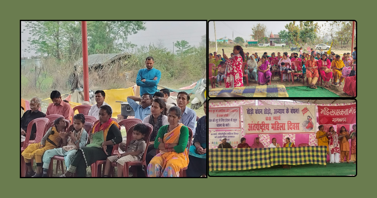 अंतर्राष्ट्रीय महिला दिवस पर पूछड़ी में गूंजी युद्ध विरोधी हुंकार, महिलाओं ने घरेलू हिंसा और कम वेतन पर भी घेरा