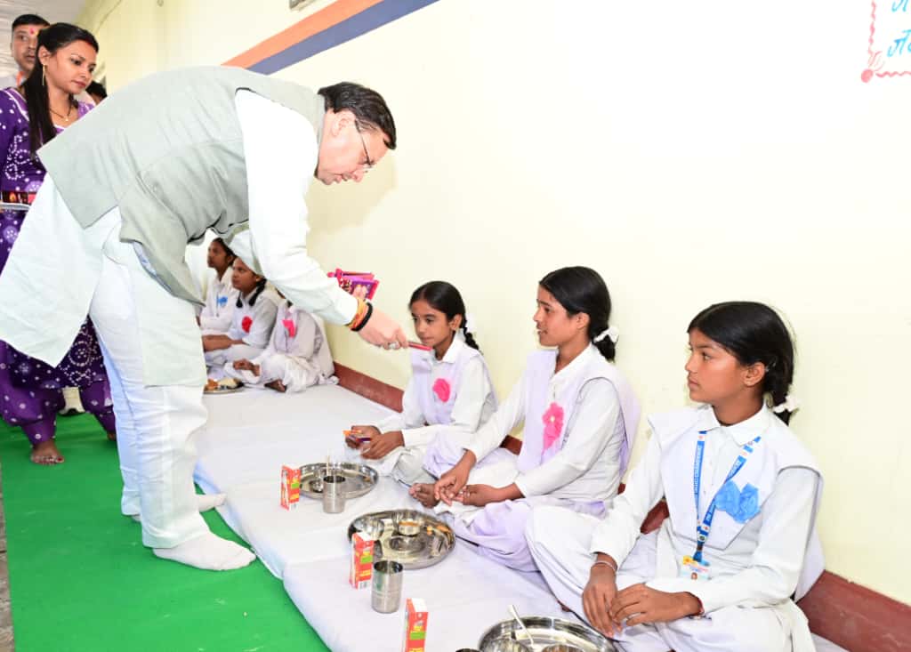 इस अवसर पर मुख्यमंत्री ने विद्यालय में अध्ययनरत बालिकाओं के साथ बैठकर भोजन भी किया। और उनसे विभिन्न विषयों पर चर्चा की एवं पढ़ाई के संबंध में फीडबैक भी लिया।