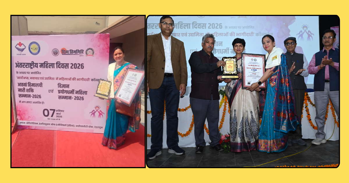 देहरादून। अंतर्राष्ट्रीय महिला दिवस के पावन अवसर पर राजधानी के ‘इंस्टीट्यूट ऑफ इंजीनियर्स’ का ऑडिटोरियम प्रदेश की मेधावी महिलाओं के गौरव का साक्षी बना। उत्तराखंड राज्य विज्ञान एवं प्रौद्योगिकी परिषद (UCOST), सूचना एवं प्रौद्योगिकी विभाग तथा दिव्य हिमगिरी संस्था द्वारा संयुक्त रूप से आयोजित भव्य समारोह में नैनीताल जनपद की डॉ. विजेता बिष्ट को प्रतिष्ठित ‘विज्ञान प्रयोगधर्मी महिला सम्मान–2026’ से नवाजा गया।