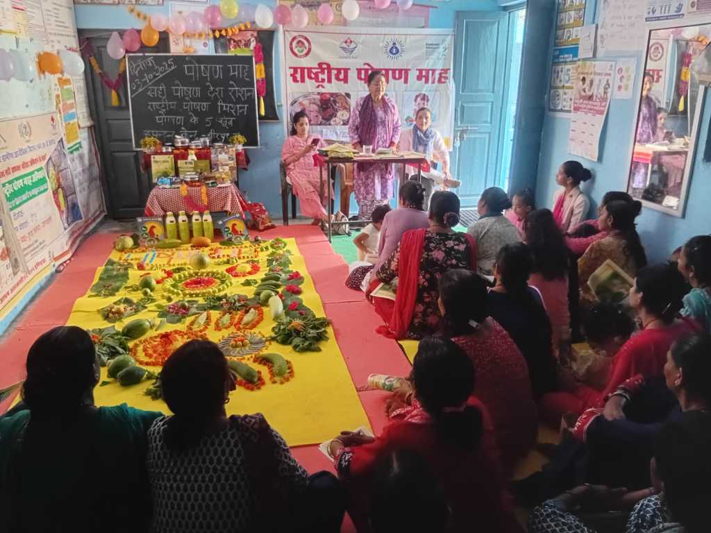 उत्तरकाशी/डुंडा।पोषण माह के तहत सेक्टर डुंडा-1 के स्पंदन वीरपुर केंद्र में तृतीय सप्ताह के अंतर्गत विविध कार्यक्रमों का आयोजन किया गया। इस दौरान केंद्र में मोटे अनाजों से बने व्यंजनों, मौसमी फल-सब्जियों, टीएचआर, कुक्ड फूड पैकेट, खजूर और केले के चिप्स सहित कई पौष्टिक उत्पादों की प्रदर्शनी लगाई गई।