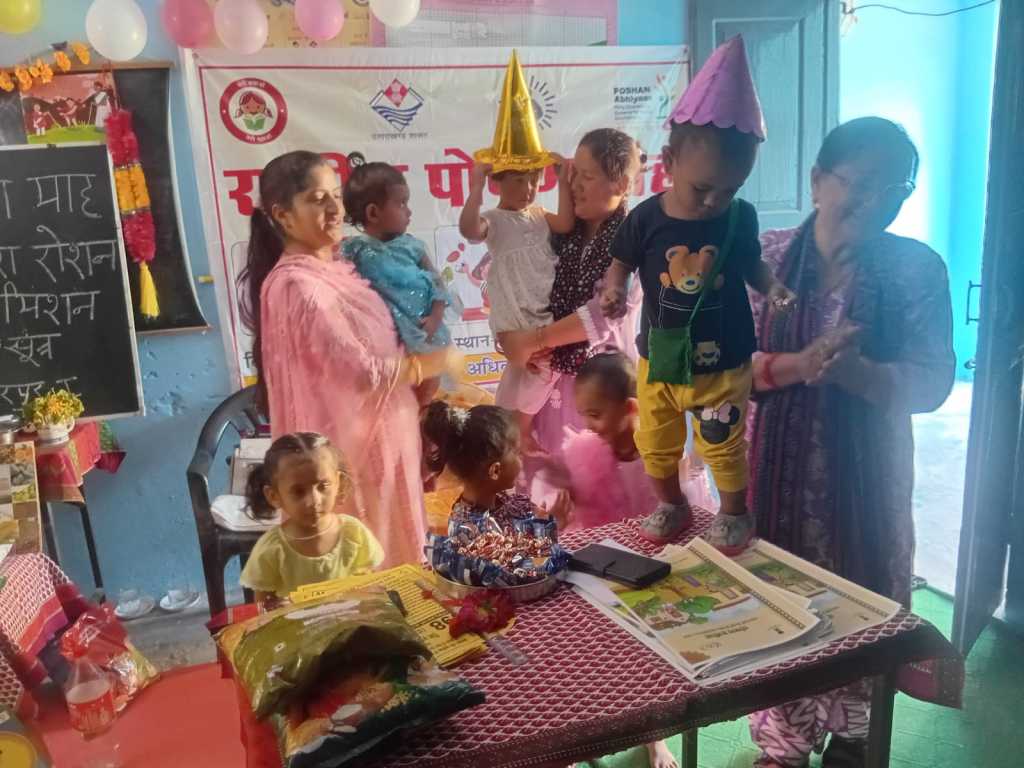 इस अवसर पर सीडीपीओ बबीता शाह की उपस्थिति रही। कार्यक्रम में गर्भवती दिव्या (पत्नी रमेश प्रसाद) की गोदभराई रस्म तथा कुमारी प्रतिष्ठा (माता ममता) का जन्मदिन समारोह भी मनाया गया।