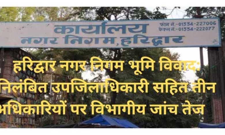 देहरादून/हरिद्वार।नगर निगम, हरिद्वार द्वारा ग्राम सराय स्थित भूमि के क्रय में अनियमितताओं से संबंधित प्रकरण को लेकर उत्तराखण्ड शासन ने कार्रवाई की गति तेज कर दी है। शासन द्वारा इस पूरे प्रकरण में तीन अधिकारियों-तत्कालीन जिलाधिकारी कर्मेन्द्र सिंह, तत्कालीन नगर आयुक्त वरुण चौधरी तथा तत्कालीन उप जिलाधिकारी अजयवीर सिंह, (निलंबित) के विरुद्ध विभागीय जांच की प्रक्रिया प्रारंभ की गई है।