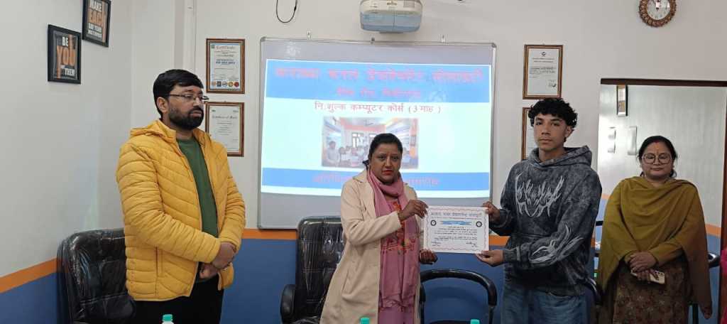 पिथौरागढ़। आराध्या रूरल डेवलपमेंट सोसाइटी द्वारा संचालित तीन माह के निःशुल्क कंप्यूटर प्रशिक्षण कार्यक्रम का समापन समाज के प्रशिक्षण केंद्र, लिंक रोड पिथौरागढ़ में आयोजित हुआ। कार्यक्रम की मुख्य अतिथि जिला पंचायत उपाध्यक्ष श्रीमती दीपिका चुफाल रहीं, जिन्होंने विद्यार्थियों को डिजिटल कौशल की आवश्यकता और महत्व पर प्रेरक संबोधन दिया।