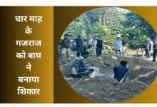 वन विभाग ने किया पोस्टमार्टम: वन विभाग की टीम मौके पर पहुंची और शव को कब्जे में लेकर पोस्टमार्टम के लिए भेजा। एसडीओ संचिता वर्मा की देखरेख में पशु चिकित्सक आर. चंतोला और एम.एस. मलिक ने पोस्टमार्टम किया। उन्होंने बताया कि मृत हाथी का बच्चा लगभग 4 महीने का था और शव 10-15 दिन पुराना था। शव का सुरक्षित दफन भी कर दिया गया है।