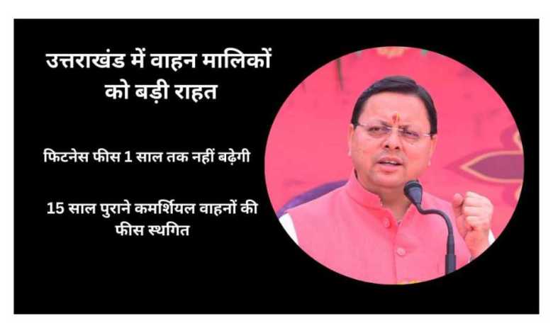 - मुख्यमंत्री पुष्कर सिंह धामी ने प्रदेशवासियों को दी बड़ी राहत-उत्तराखंड में एक वर्ष तक नहीं बढ़ेगी वाहन फिटनेस फीस