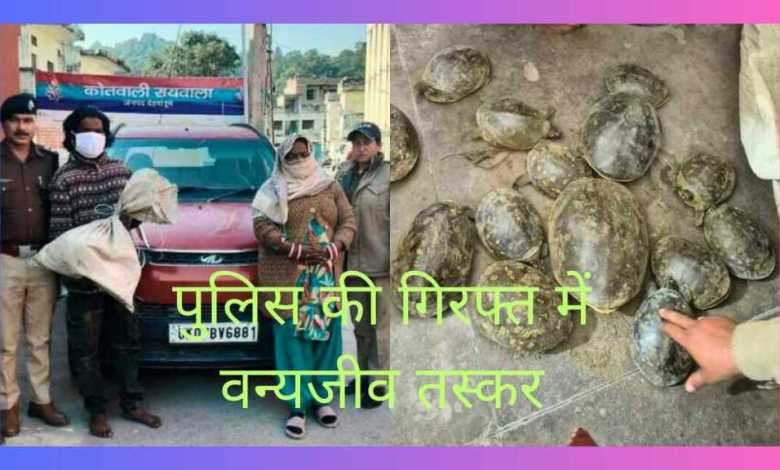 दिनांक 04-12-25 की सुबह रायवाला पुलिस नियमित चेकिंग कर रही थी। इसी दौरान कोतवाली गेट के पास लाल रंग की KUV 100 कार पुलिस को संदिग्ध दिखी। तलाशी लेने पर कार की डिग्गी से संरक्षित प्रजाति के 14 जीवित कछुए बरामद किए गए। वाहन में सवार दंपती—