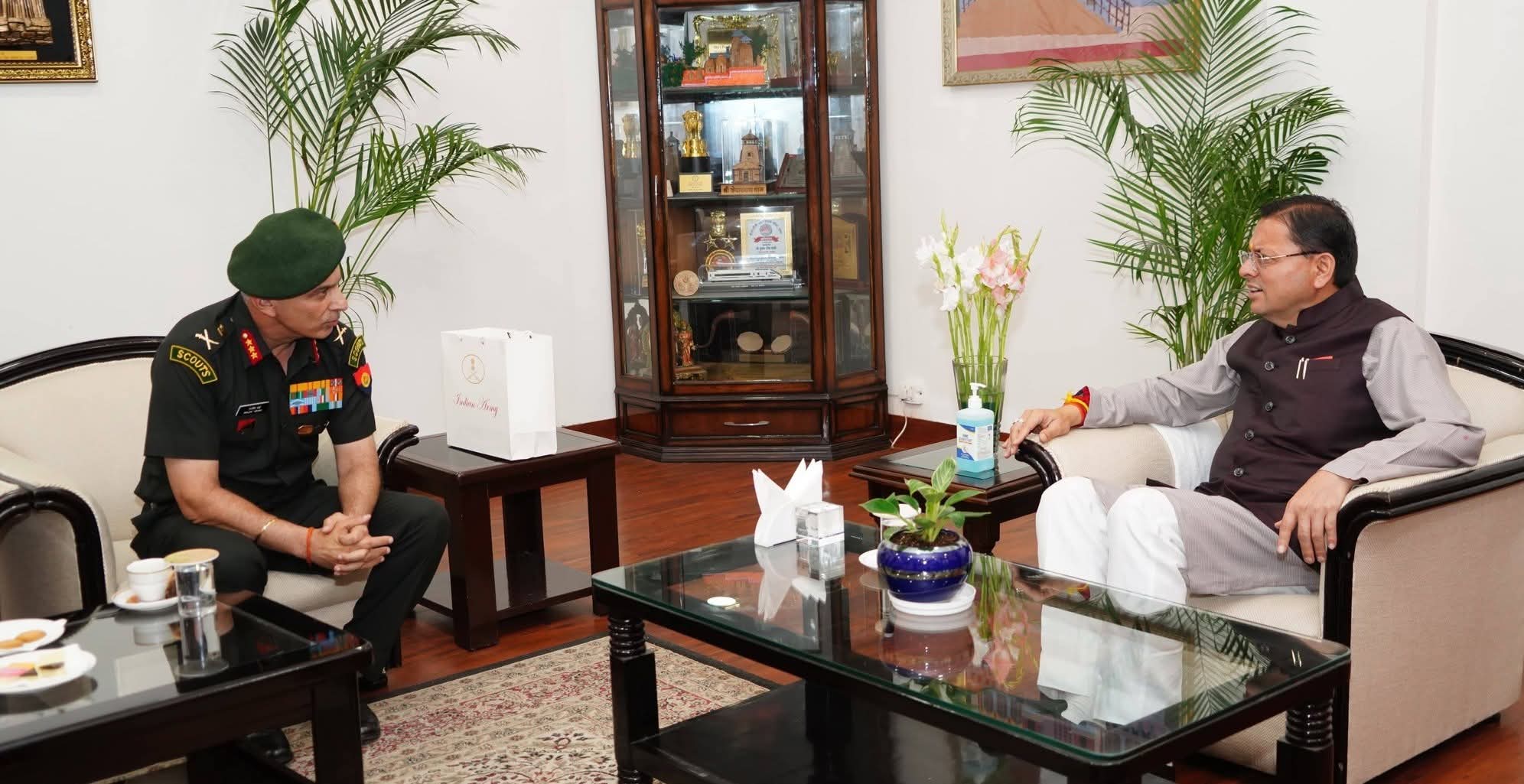 देहरादून।उत्तराखंड की सुरक्षा और विकास की दिशा में एक महत्वपूर्ण कदम उठाते हुए मुख्यमंत्री पुष्कर सिंह धामी ने देहरादून स्थित आवास पर भारतीय सेना के उप सेना प्रमुख (रणनीति) लेफ्टिनेंट जनरल राजीव घई से मुलाकात की। इस उच्च स्तरीय संवाद के दौरान सीमावर्ती सुरक्षा, सामरिक प्रबंधन और राज्य के भौगोलिक परिवेश में सेना की भूमिका जैसे अत्यंत संवेदनशील और समसामयिक विषयों पर गहन मंथन किया गया।