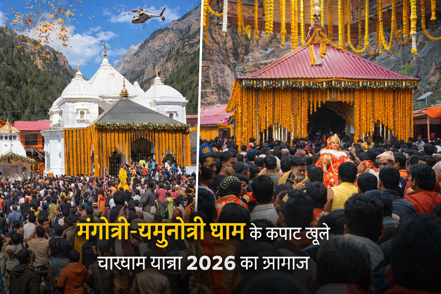 कपाट खुलते ही मंदिर परिसर में मौजूद श्रद्धालुओं पर हेलीकॉप्टर से फूलों की वर्षा की गई, जिससे पूरा माहौल भक्ति और उत्साह से भर गया। मंदिर को आकर्षक फूलों से सजाया गया था, जो इसकी भव्यता को और बढ़ा रहा था।