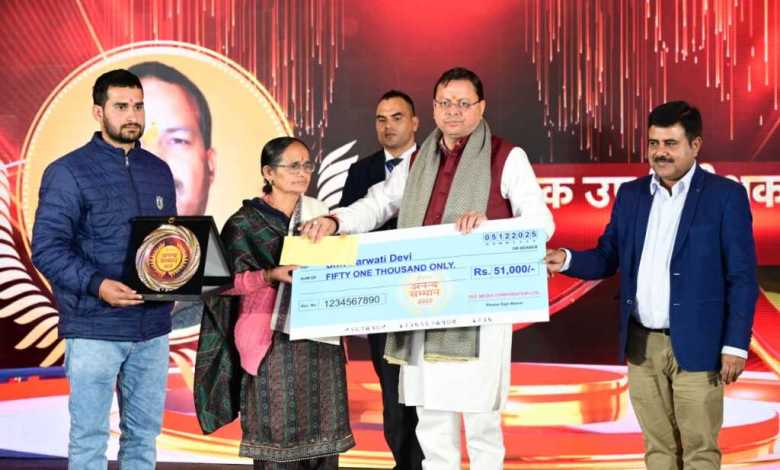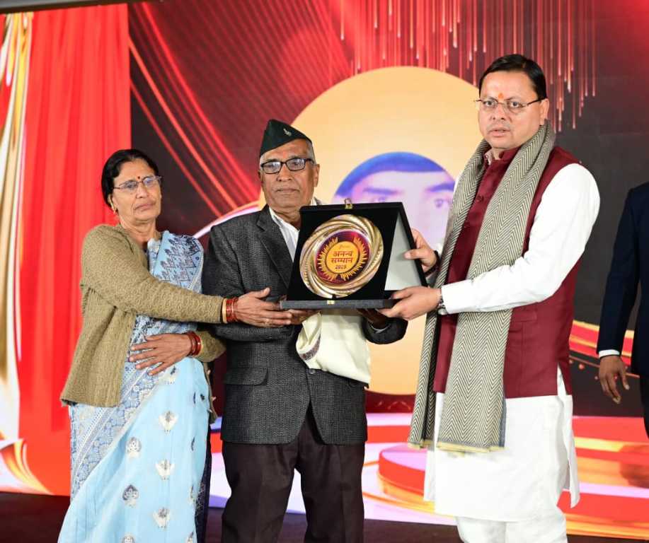 देहरादून।मुख्यमंत्री पुष्कर सिंह धामी ने शुक्रवार को सहस्त्रधारा रोड, स्थित एक होटल में उत्तराखंड अनन्य सम्मान कार्यक्रम में प्रतिभाग किया। इस दौरान मुख्यमंत्री ने शहीद सैनिकों के परिजनों को सम्मानित किया।