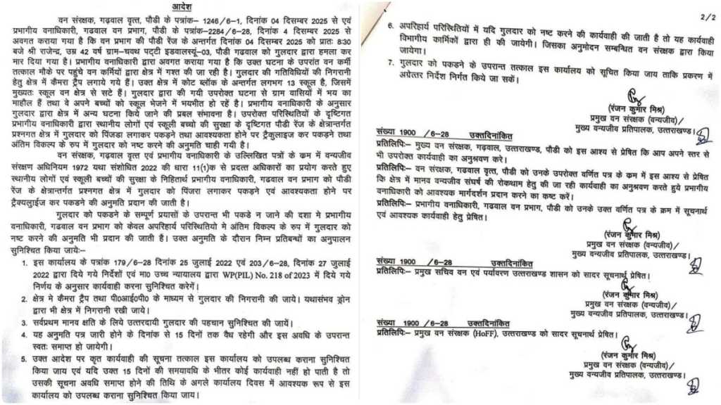 वन विभाग ने गुलदार को मारने का आदेश जारी किया