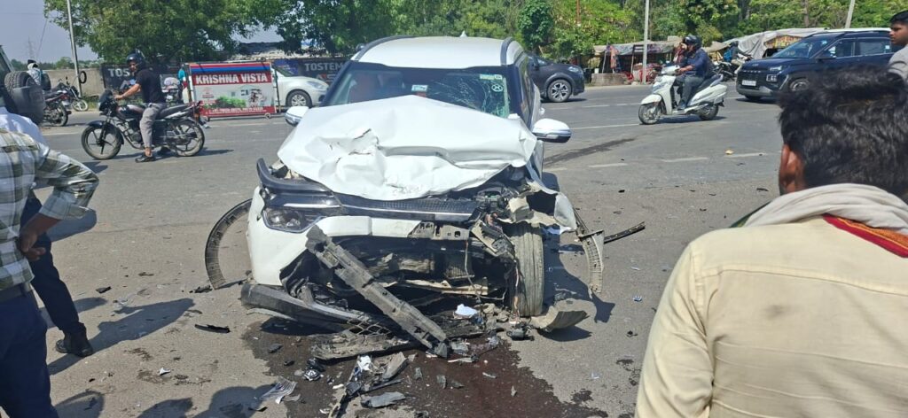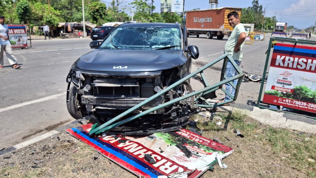 रुद्रपुर (उधम सिंह नगर): उत्तराखंड के रुद्रपुर स्थित सिडकुल चौक पर उस समय अफरा-तफरी मच गई, जब दो तेज रफ्तार विलासिता पूर्ण कारों के बीच एक भीषण भिड़ंत हो गई। यह टक्कर इतनी जोरदार थी कि दोनों वाहनों के अगले हिस्से के परखच्चे उड़ गए। हालांकि, नियति को कुछ और ही मंजूर था; इस जानलेवा रुद्रपुर सड़क हादसा में तकनीकी सुरक्षा कवच यानी सुरक्षा एयरबैग देवदूत बनकर सामने आए, जिससे एक बड़ा खून-खराबा होने से टल गया और सभी यात्रियों की जान बच गई।