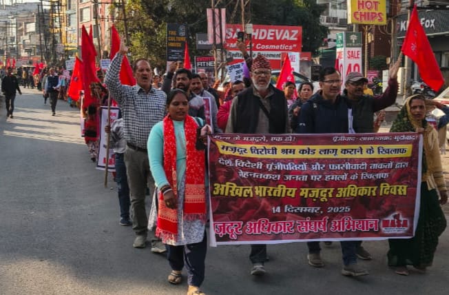 रुद्रपुर के गांधी पार्क में आयोजित कुमाऊं स्तरीय मज़दूर सभा के बाद मुख्य बाजार में विशाल जुलूस निकाला गया। इस दौरान 12 केंद्रीय मांगों का ज्ञापन राष्ट्रपति को तथा 17 सूत्रीय मांगों का ज्ञापन मुख्यमंत्री उत्तराखंड को भेजा गया। वक्ताओं ने कहा कि मोदी सरकार द्वारा 21 नवंबर से लागू की गई चार श्रम संहिताएं मज़दूर वर्ग पर अब तक का सबसे बड़ा हमला हैं, जिनसे रोज़गार सुरक्षा खत्म हो रही है, काम के घंटे बढ़ रहे हैं और सामाजिक सुरक्षा कमजोर की जा रही है।