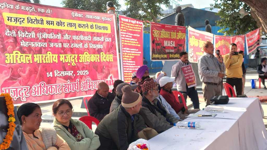 रुद्रपुर/हरिद्वार।मज़दूर अधिकार संघर्ष अभियान (मासा) के आह्वान पर ‘अखिल भारतीय मज़दूर अधिकार दिवस’ के अवसर पर देशभर में मज़दूर विरोधी चार श्रम संहिताओं (लेबर कोड्स) के खिलाफ व्यापक विरोध प्रदर्शन हुए। उत्तराखंड में कुमाऊं मंडल का केंद्रीय प्रदर्शन रुद्रपुर के गांधी पार्क में जबकि गढ़वाल मंडल का मुख्य कार्यक्रम हरिद्वार में आयोजित किया गया, जहां मज़दूरों ने सभा, रैली और जुलूस निकालकर सरकार की नीतियों के खिलाफ आवाज बुलंद की।